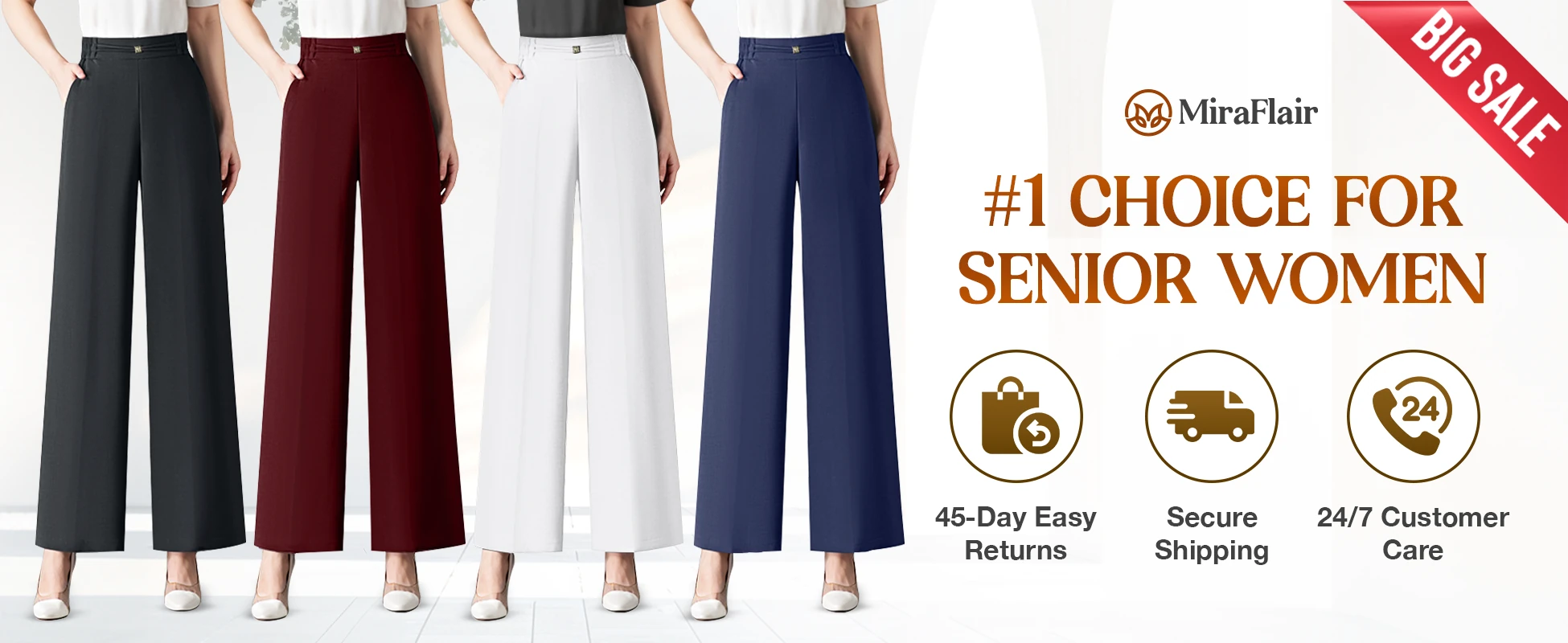 Experience timeless chic with MiraFlair, wide-leg trousers that bring effortless comfort, flowing elegance, and a flattering silhouette - thoughtfully designed for senior women who seek both style and ease in every step.